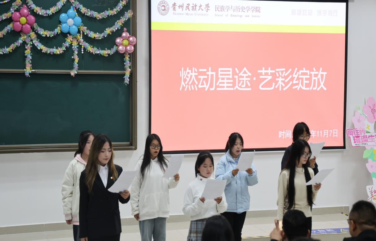 晚会现场暖意融融,张文艳老师、聂开吉老师、刘欢歌老师、王涛老师受邀出席,与2025级历史班、文物与博物馆学班、民族学班、文化产业管理班的全体新生,以及学院团委学生会的全体成员一同落座观看。大家欢聚一堂共同镌刻下属于“民历人”的初遇记忆,让陌生的距离在欢声笑语中悄然消融。