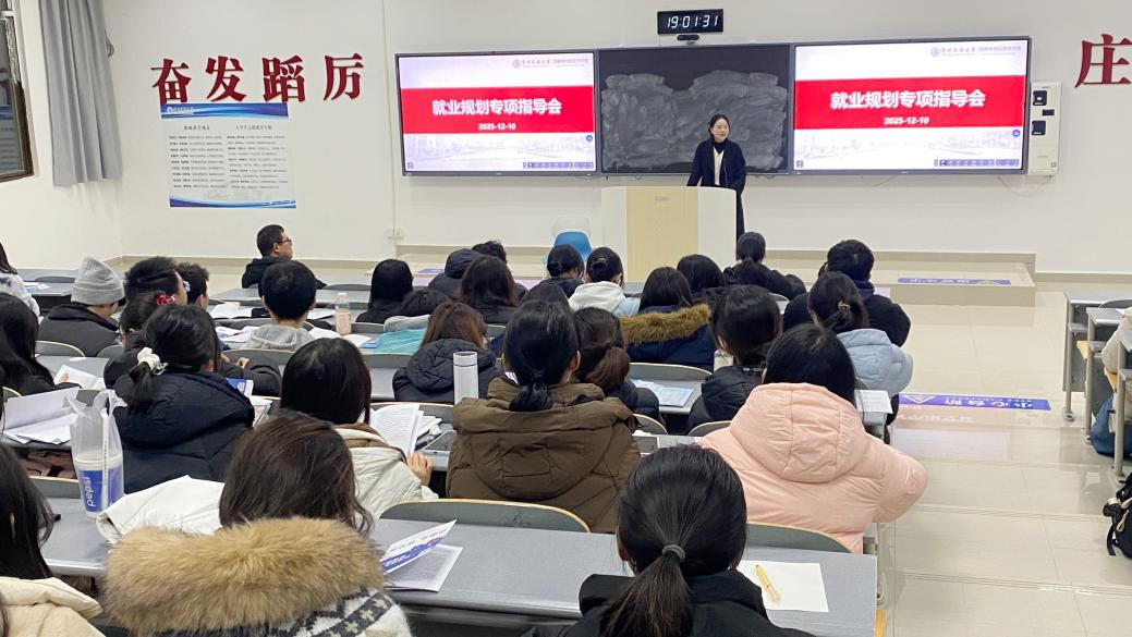 会议伊始,刘欢歌老师介绍了活动背景与目的,为同学们清晰梳理了“考研、考公考编、直接就业”三大主流发展路径,分析了每条路径的现状、挑战与准备要点,并反复建议同学们结合自身兴趣与优势尽早规划,将长远目标分解为可执行的阶段性任务,明确目标、科学备考,树立积极务实的就业观念。